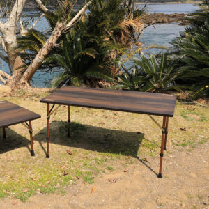 木目柄が高級感を醸し出すワンランク上のキャンプ用折り畳みテーブルです。安定感抜群・軽量で持ち運びも楽々です。