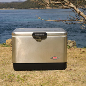 51ℓの大容量のステンレス製クーラーボックス、保冷力も抜群で、夏のキャンプには欠かせないアイテムの1つ。※氷なし