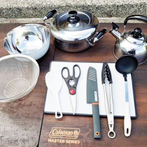 包丁、まな板、しゃもじ、トング、調理ばさみ、鍋、お玉、ボール、ザル、やかん、その他、掲載していない調理器具も御座いますので、ご希望ありましたら、お気軽に、キャンプ場受付までお尋ねください。